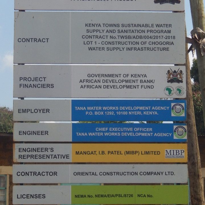 - signboard for chogoria water supply project