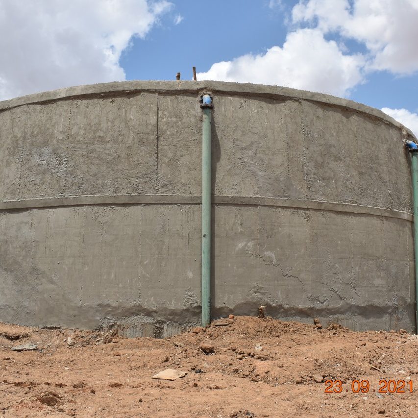 - Garissa Water Supply Water Tank with a capacity of 1200M3. The tank receives water from boreholes and Supplements the Garissa water treatment works.The project currently is at 62% completion.