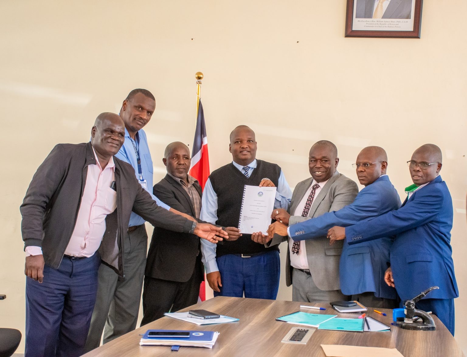 Tana Water Works Development Agency (TWWDA), in collaboration with the County Government of Nyeri, officially handed over two boreholes located at Kieni TVET and Kahiraini Primary School to the Nyeri Water and Sanitation Company (NYEWASCO). This milestone reflects TWWDA’s enduring commitment to expanding access to clean, reliable water for communities across Nyeri Sub-County. The handing-over ceremony was graced by top leadership of the two entities including TWWDA CEO Eng. Philip Gichuki, NYEWASCO MD Eng. Peter G. Kahuthu, and TWWDA Chief Manager Technical Services Eng. Daniel Ngugi and NYEWASCO Chief Manager Technical Services Eng. James Ngunjiri among other leaders.